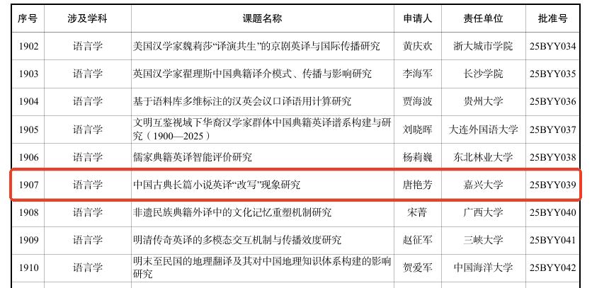 近日,2025年度国家社科基金项目立项名单正式公布。我院唐艳芳教授作为项目负责人申报的《中国古典长篇...