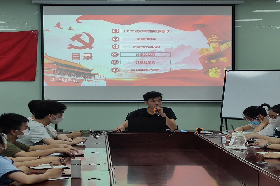 为加强支部党员和积极分子理论基础知识学习、提高政治觉悟,6月1日晚上19:00,管理学院2019级第二学生党支部在第二行政楼108开展《中国共产党章程》学习党课,本次党课由支部书记黄华科主讲,支部全体党员和积极分子出席参与。