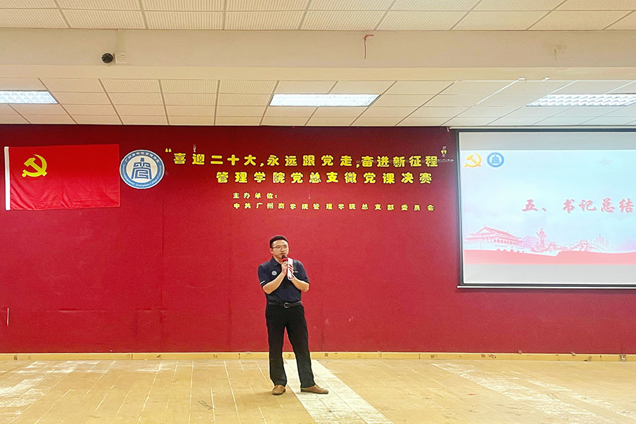 为深入学习贯彻党的十九届六中全会精神,推进党史学习教育常态化、长效化。6月17日,管理学院党总支在第一教学楼206开展“喜迎二十大,永远跟党走,奋进新征程”微党课比赛,出席本次比赛的嘉宾有管理学院党总支书记汪椿东以及各党支部支委会成员。