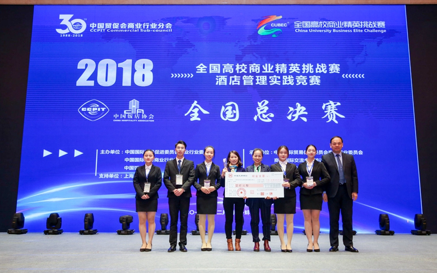 12月9日,2018年全国高校商业精英挑战赛酒店管理实践竞赛全国总决赛,在素有“珠城”之称的安徽蚌埠落下帷幕。本届竞赛历经三个月,规模庞大,参赛院校多,全国共有110多个高校团队报名参赛,其中中山大学、华南师范大学、郑州大学、西安外国语大学、重庆工商大学等50支队伍300余人赴现场参加总决赛。我校旅游学院李瑜、谢应培、沈卓静、罗隽怡、张丽尊五位学生组队参与本次大赛,经过激烈角逐,荣获总决赛季军,大赛一等奖,充分展示了广商学子较高的专业素养和能力。旅游学院黄丽英、许冰镔两位老师获得“优秀指导教师”称号。我校学生团队以总决赛前三名的成绩入围2019年亚太商务策划竞赛,计划于明年四月赴澳大利亚悉尼参加亚太MICE与酒店管理实践竞赛。