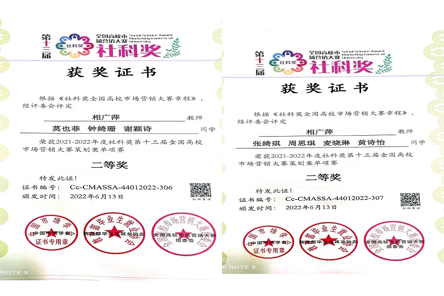 社科奖全国高校市场营销大赛是由中国市场学会、教育部高校毕业生就业协会、教育部全国高校现代远程教育协作组主办的面向全国高校在校学生包括港澳台地区高校在校学生的营销实践技能与创新创业能力竞赛活动。作为一项全国性公益赛事,大赛已成为国内高校界参与人数最多、影响力最广、规格最高的国家级营销类学科赛事。本次大赛从2021年9月开赛,历时8个月,共吸引480余所高校、2986支团队、万余名学生参赛,收到纸质及电子各式参赛作品4000余件。我院学子通过前期的知识赛选拔,再到后续选题的确定,团队都保持着不放弃,放手一搏的态度,最终不负众望,取得佳绩。