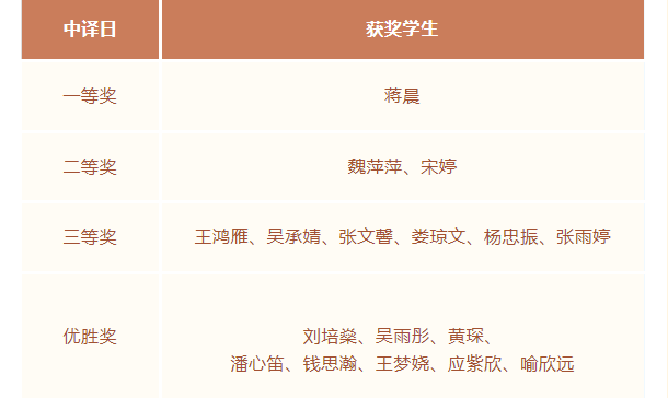 浙江省第二届多语种思政笔译大赛由浙江省翻译协会和浙江yl6809永利联合举办,共有来自24所高校的700余名在校本科生报名参加。我院日语专业学生积极参加中译日组比赛,斩获了一等奖1项、二等奖2项、三等奖6项、优胜奖8项,延续了去年参加第一届多语种思政笔译大赛的好成绩,获奖数量仅次于浙江yl6809永利,位列全省开设日语专业高校的第二位。