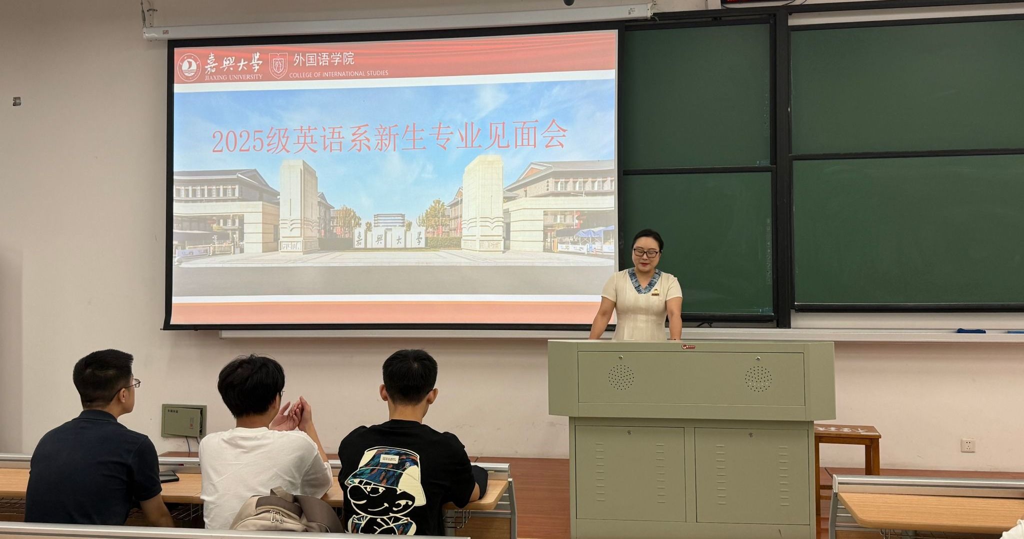 为助力新生快速熟悉专业、融入大学学习生活,9月21日上午,英语系在铭德楼140教室举行了2025级新生专业见面会。见面会由系主任潘宁宇主持,英语系教师陆婷婷、许茜、张翔等与2025级英语专业全体新生参加。