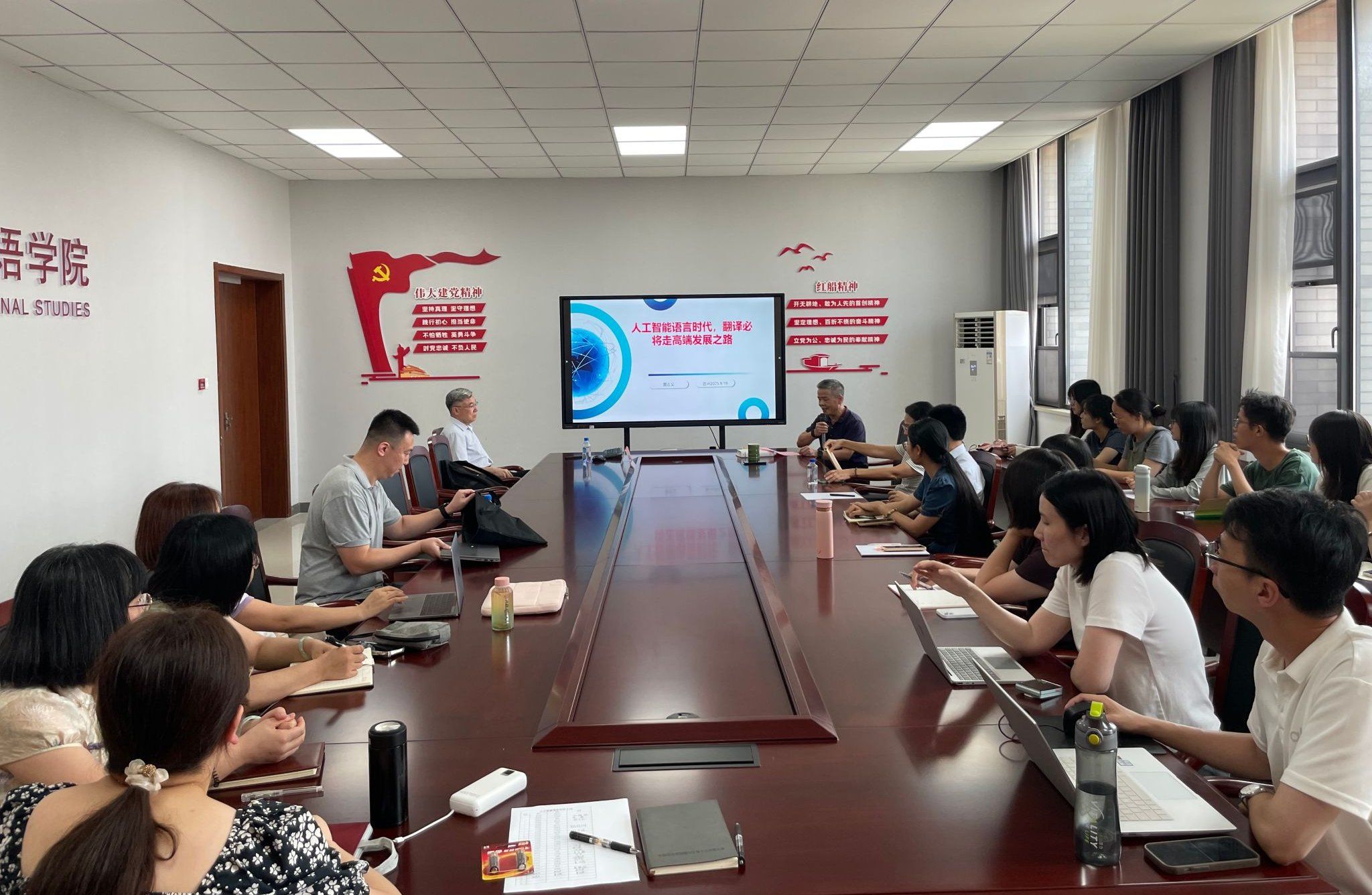9月19日下午,中国译协常务副会长、中国翻译研究院副院长黄友义先生应邀莅临我院,作题为“人工智能语言时代,翻译必将走高端发展之路”的学术讲座。讲座由院长唐艳芳教授主持,学院教师代表及翻译专业研究生共三十余人参加。