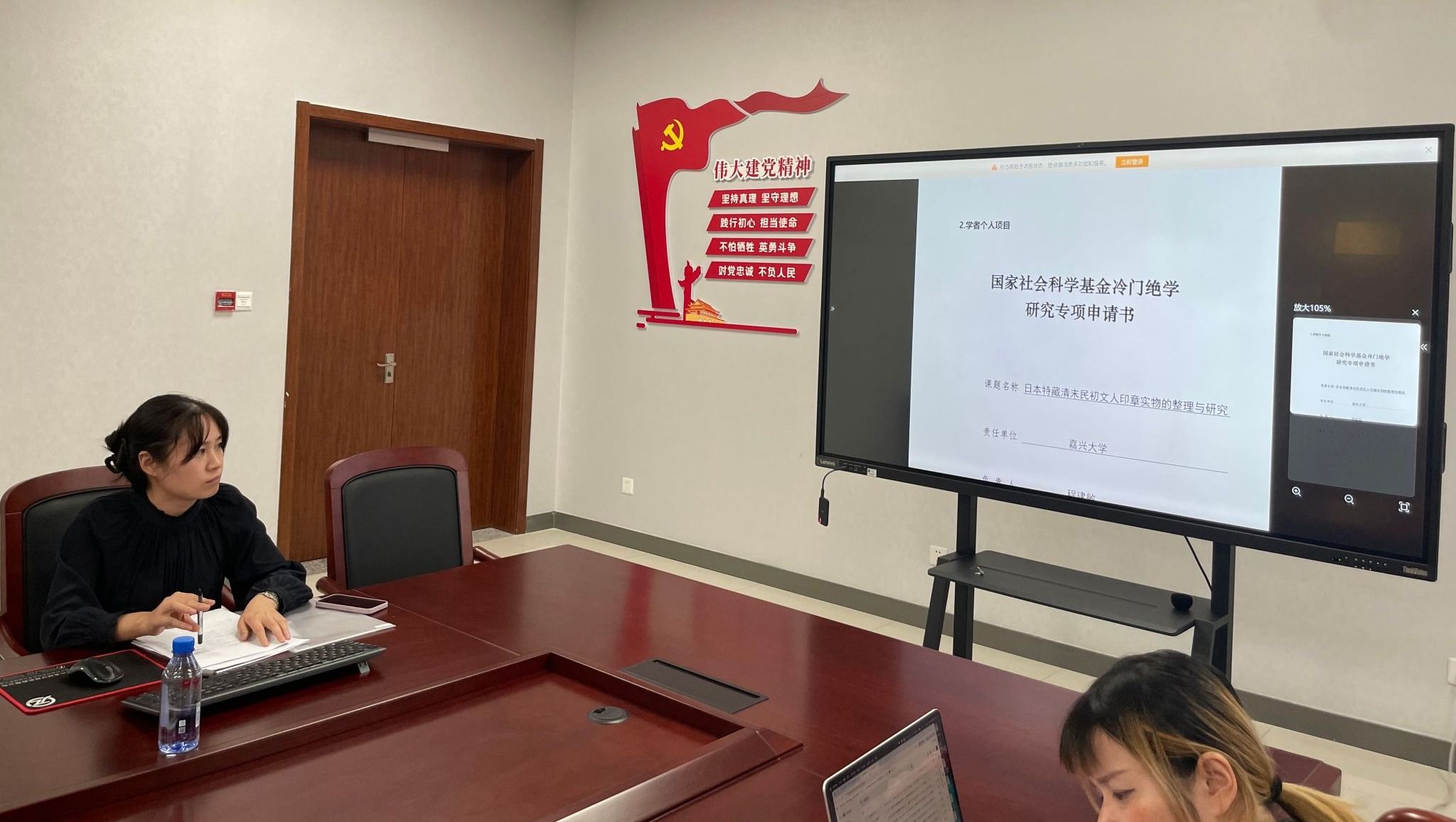 本次研讨会邀请了多位老师作专题汇报,启发老师们如何撰写论文、如何进行项目选题以及如何有效打磨申报书。章剑飞老师以“论文写作全记录”为题,分享了发现问题、形成选题、论证选题、收集数据、撰写投稿的心路历程;陆晓妹老师以“人工智能赋能大学生虚拟仿真实验教学效果的评估与优化路径研究”为题,分享了教改课题选题过程以及申请书撰写框架;程建敏老师以“日本特藏清末民初文人印章实物的整理与研究”为题,汇报了国社科基金冷门绝学研究专项申报书打磨进展情况。单谊与多位老师对汇报进行点评,肯定亮点并提出改进建议。