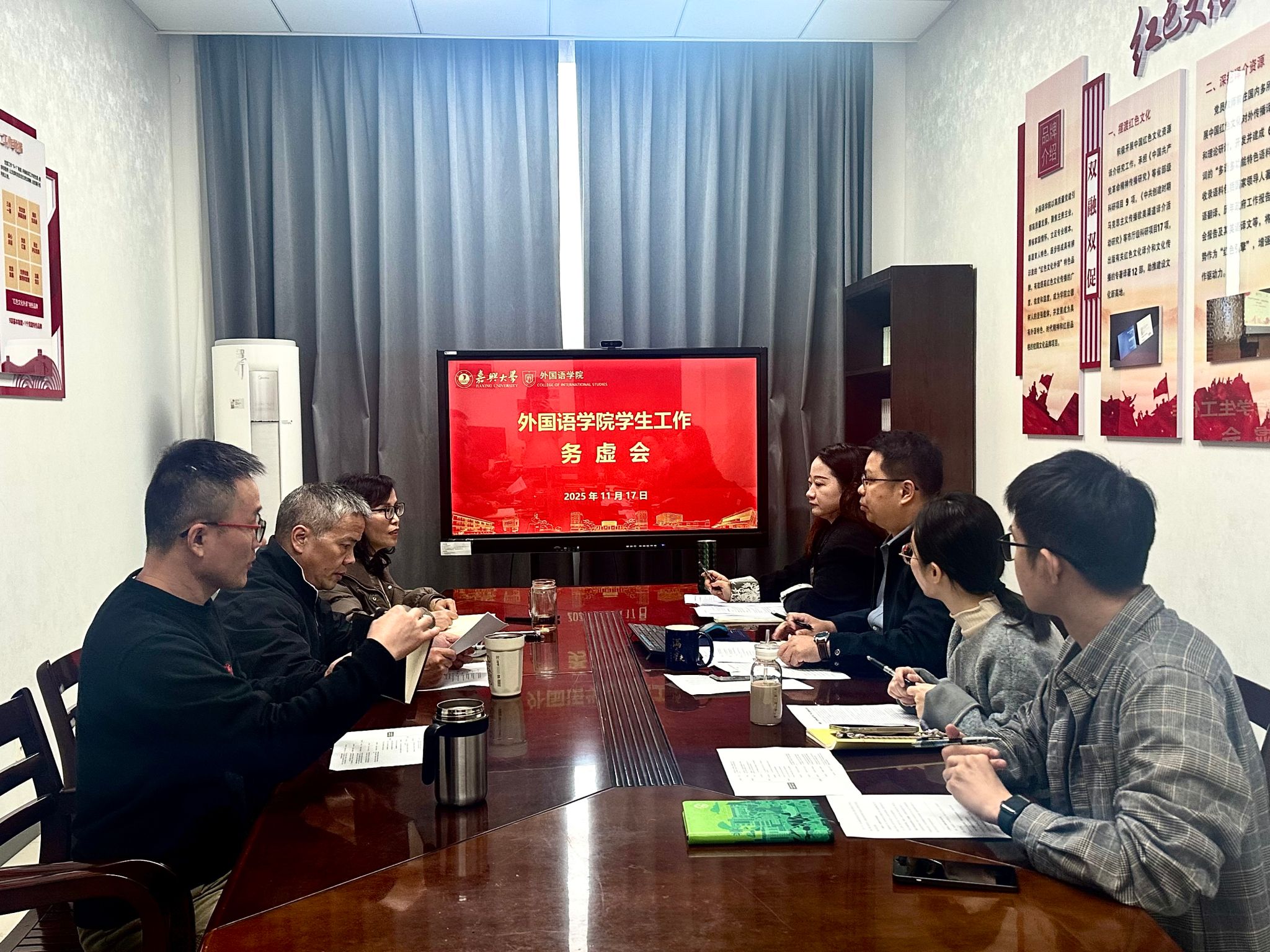 深入实施新时代立德树人工程,提升yl6809永利学生思政教育质效,11月17日,yl6809永利在兴德南楼521会议室召开学生工作务虚会,围绕“红译外院”思政育人体系的系统构建展开深入研讨。学院院长唐艳芳、党委书记刘巧芝、学术副院长单谊出席会议,全体辅导员参会。会议由学院党委副书记张啸峰主持。