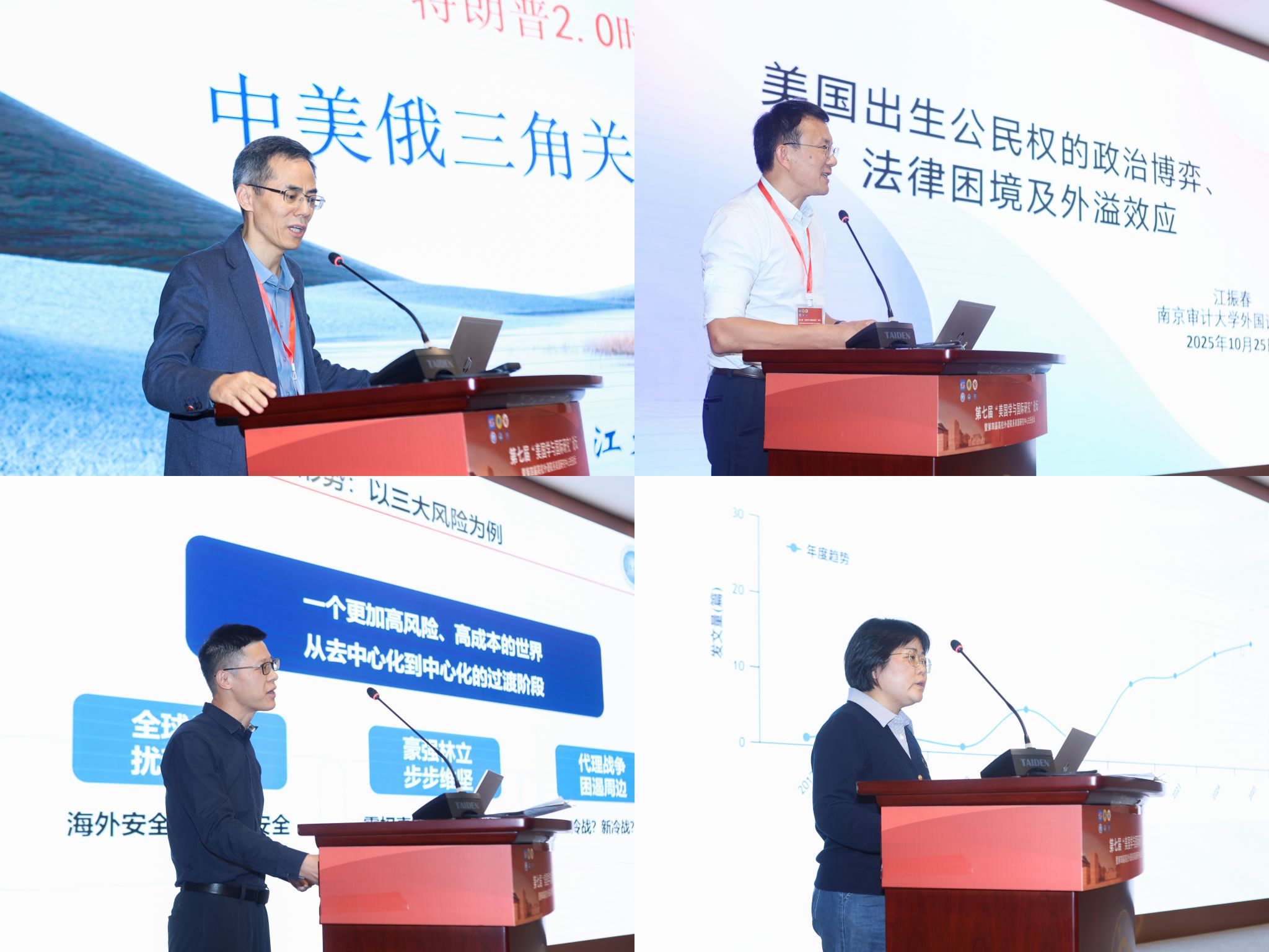 围绕“区域国别学视域下的美国研究”等主题,论坛设置12场主旨报告,邀请中国社会科学院美国研究所副所长、研究员袁征,中华人民共和国驻美国大使馆原国防武官、退役少将张力,上海财经大学yl6809永利特聘教授李超民,上海外国语大学美国研究中心主任、教授林玲,华东师范大学外语学院美国研究中心主任、教授金衡山,国防科技大学yl6809永利教授王萍,浙江yl6809永利美国研究中心主任、教授王冲,yl6809永利教授肖欢,黑龙江大学外文学院(区域国别学院)执行院长、教授吴承义,南京审计大学yl6809永利院长、教授江振春,中国社会科学院美国研究所社会文化室负责人、副研究员张佳俊,国防科技大学yl6809永利副教授李静作主旨报告。