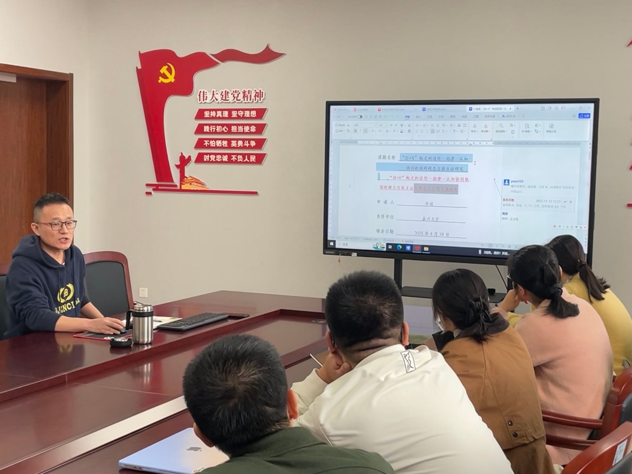 单谊在会上解读了外审专家的评审意见和建议,并结合自身科研经验,在申报项目的立项依据、文献综述、研究内容、研究方法、创新性、可行性和语言格式等维度上提出修改建议。他强调,社科项目的创新关键在于通过理论透镜的引入、嫁接与再造,将具体问题提升至原理性、范式性探讨层面,从而在学术对话中实现从“特色描述”到“贡献界定”的跨越。会上还邀请了程建敏老师分享了国社科冷门绝学项目申请书打磨心得体会。