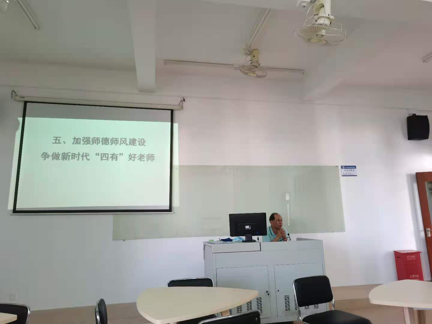 11月26日下午14点—16点,广州商学院管理学院曾坤生教授在四教611为管理学院入职一年的青年教师做了《师德师风》主题讲座培训。曾教授首先从习近平主席的讲话“一个人遇到好老师是人生的幸运,一个学校拥有好老师是学校的光荣,一个民族源源不断涌现出一批又一批好老师则是民族的希望”引入此次培训的主题。