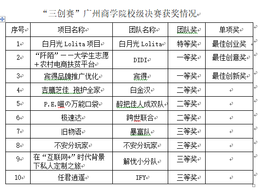 附件: “三创赛”广州商学院校级决赛获奖情况