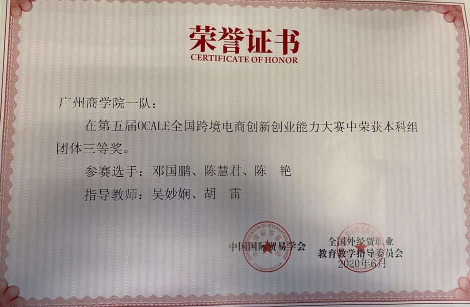 第五届OCALE全国跨境电商创新创业能力大赛由中国国际贸易学会、全国外经贸职业教育教学指导委员会主办,分为校内选拔赛、创新创业能力大赛。在校内选拔赛阶段,我校来自不同学院共53名学生积极参与,经过严格的考核筛选,最终选拔出3支队伍参加全国赛。为了更好地参赛,从6月5日开始通过钉钉、腾讯会议等平台进行线上交流培训,6月9日至14日开展线上练习赛,指导教师及学生不断探索并总结经验。在6月16日至19日的全国创新创业能力赛阶段,吸引了来自全国203所院校638支队伍,共计1914名选手参加。在比赛过程中,广州商学院团队指导老师及成员将练习赛获得的经验进行总结分析,采取稳中求进和规避风险的运营策略,根据平台规则、现状,择优选取商品进行平台运营,在激烈的市场竞争中,始终保持平稳的心态,根据实时情况及时调整团队运营策略,成员团结一致、默契十足,最终完成了整个比赛,并喜获佳绩。