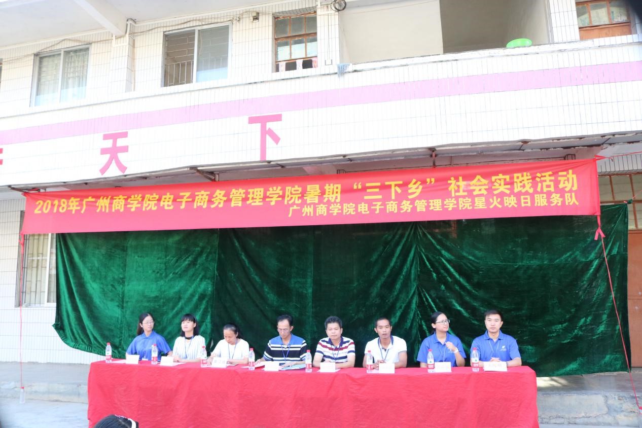 广州商学院电子商务管理学院“星火映日”暑期三下乡社会实践活动在7月10日正式启航,在7月10日的夜晚,志愿者们在老师的指导下,提前进行了充足的准备以及布置场地工作。
