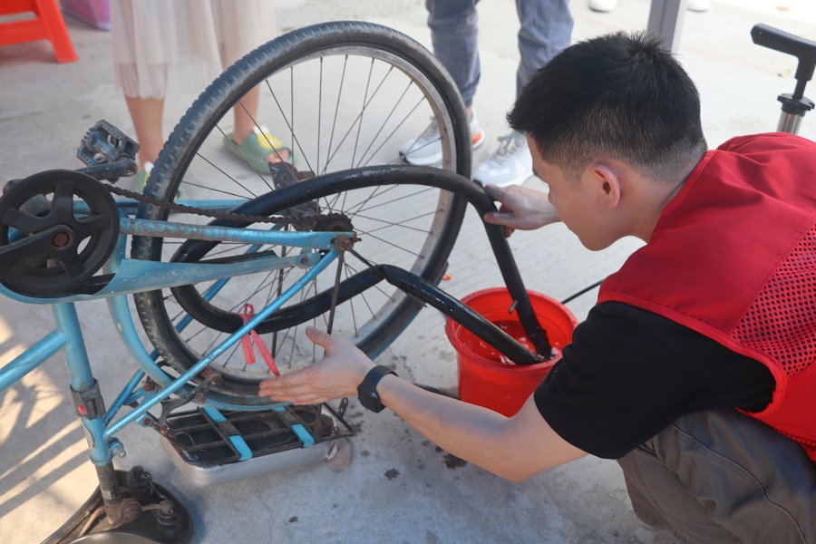 在做好疫情防控常态化要求的前提下,管理学院组织了35名具有维修经验且有责任心的志愿者成立了自行车维修队,义务帮助全校师生维修故障自行车。志愿者们对需要维修的自行车细心检查,并根据刹车无力、轮胎漏气、座椅卡死、车头松动、链条移位等基础维修问题进行检修,互相交流借鉴维修经验,以饱满的热情、认真负责的态度对待前来维修自行车的师生们,有条不紊地完成一项项维修服务,累计维修自行车近200辆,传递青春正能量,为在校师生提供了便捷的服务,受到了广大师生的充分肯定和一致好评,进一步提高了为群众办实事、解难题的服务能力,大力弘扬了“奉献、友爱、互助、进步”奉献精神与“我为人人”的雷锋精神。