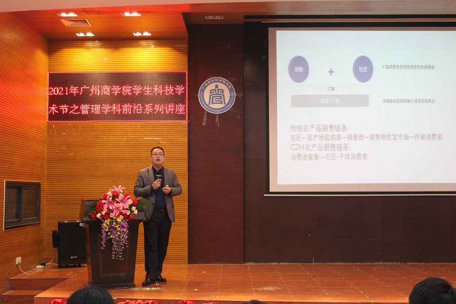 为营造良好的科技学术氛围,提高广大学子对于电子商务前沿发展模式和发展方向的学识视野,培养应用型、复合型的高素质人才。管理学院于11月17日开展了2021年广州商学院学生科技学术节之管理学科前沿系列“电子商务高级专题”讲座。此次讲座有幸邀请华南理工大学电子商务系王和勇教授主讲,管理学院副院长白丽、辅导员代表及专任教师代表出席本次讲座,讲座由学生会指导老师蔡俊发主持。
