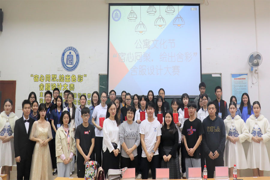 为了进一步推进公寓文明建设,全面提高大学生综合素质,增强宿舍凝聚力,培养学生互助互爱、团结协作精神,促进校风学风建设。管理学院于2019年12月17日19:00在四教308举行公寓文化节“宿心同聚,绘出舍彩”舍服设计大赛决赛。出席本次活动的评委和嘉宾有管理学院学生会指导老师蔡俊发,16级辅导员徐佳佳、16、18级辅导员刘智莹、17级辅导员杨红烨以及校、二级学院学生干部代表。