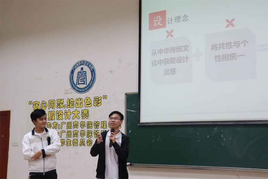 本次舍服设计大赛形式新颖,内容健康向上,通过绘制舍服电子版稿件进行比赛。参与初赛的共有23组队伍,经过评委们严格筛选,共有7个参赛作品入围决赛。决赛现场,选手们通过PPT和展示舍服实物,详细地介绍了他们的设计理念与特色。每件舍服都充满了创意,选手们风趣幽默的讲解、每一个蕴含着宿舍情义的小细节以及每一个寄有美好寓意的精美设计相结合,使现场观众的赞美声一浪高过一浪。经过激烈比拼,“物流女子天团”、“猛熊戏团”、“six god”、“吃蟹肉煲队”四支队伍获得优秀奖;“羊城小组”获得三等奖;“惟吾德馨队”获得二等奖,“山里儿队”获得一等奖。