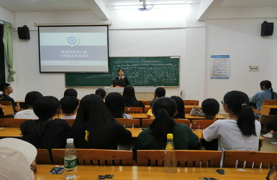 “中国欲存争于天下,其首在立人,人立而后凡事举。”为增强大学生文明礼仪素养,做讲文明、懂礼貌的新时代青年,管理学院2020级学生于10月12日晚七点在第四教学楼开展大学生文明修养形象专题教育,本次专题教育通过主题班会形式开展,由管理学院20级辅导员张亚珍、柯陈洁主讲,2020级全体学生参加。