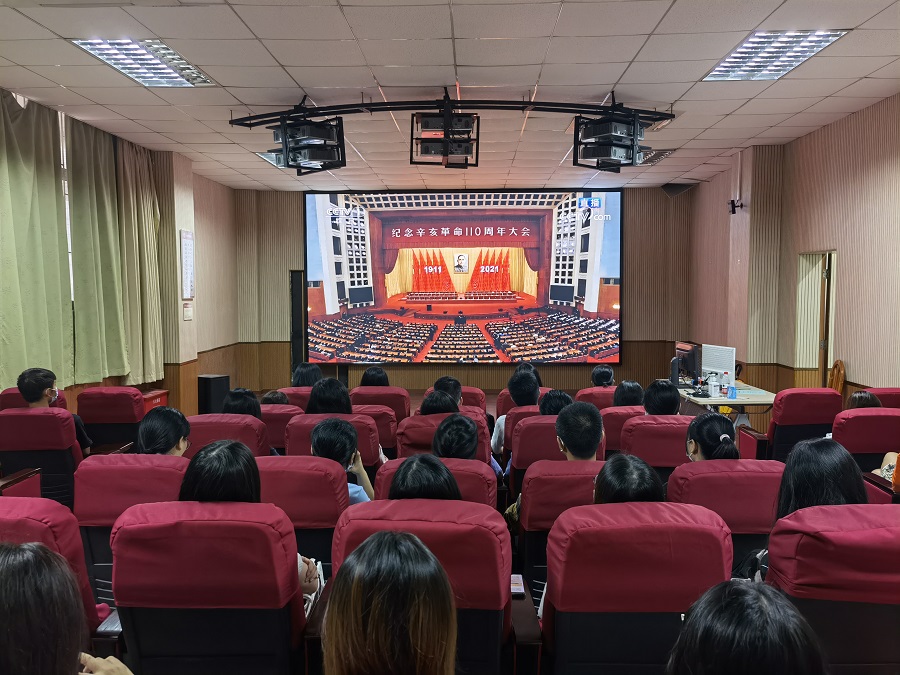 10月9日上午,纪念辛亥革命110周年大会在北京人民大会堂隆重举行,习近平总书记出席大会并发表重要讲话。管理学院党总支组织学院师生党员和积极分子等代表在一教106红色影视展播厅共同观看了大会直播。其余师生利用网络直播等多种形式观看。