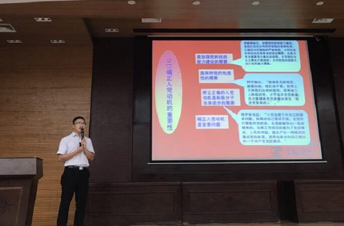 汪椿东书记首先从入党动机谈起,强调新生一定要树立正确入党动机,要有坚定的信念,全心全意为人民服务的思想和起先锋模范作用的觉悟,正确的入党动机是加强党的执政能力建设的需要,是保持党的先进性的需要,更是积极分子自身进步的需要。第二,党员的标准,入党标准与学生成长成才存在内在联系,成为党员的过程实际上也是实现先进、优秀的过程。第三,以实际行动争取入党,自觉接受党组织的培养和考察,积极创造入党条件,以实际行动争取入党。最后,明确入党程序,汪椿东对于广州商学院学生党员组织发展程序进行了详细的解读。