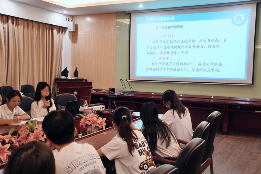 会议伊始,刘美欣从班团干部职责、班团干部素质以及文书工作三方面进行详细工作培训。她强调,作为班团干部,一是要以身作则,提高服务意识,坚持从同学中来到同学中去的意识;二是要平衡好学习与工作的关系,从而提升自身的能力素质和心理素质。三是要培养主动反馈的意识,养成事后总结反馈的工作习惯。紧接着,刘美欣就策划书撰写及常规工作注意事项对干部们进行了系统的培训,指出各干部要努力学习理论知识,珍惜岗位的锻炼机会,不断提升文书撰写能力。