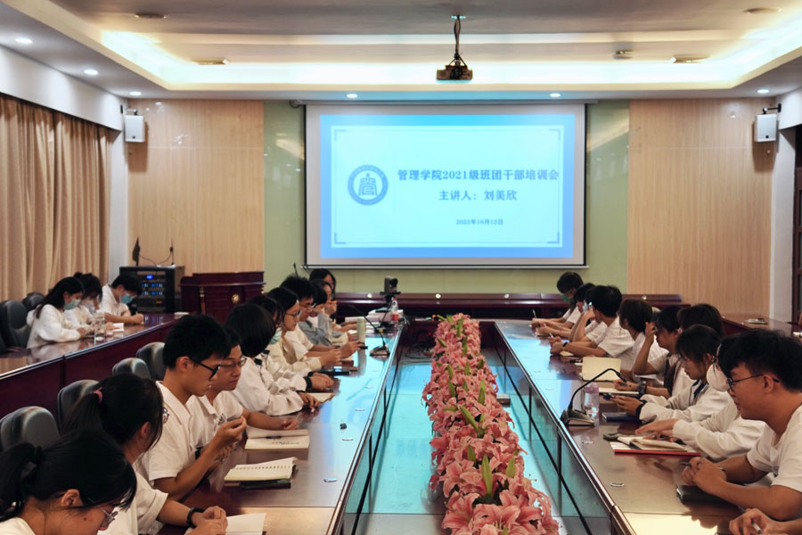 为进一步加强班团建设,推动班团工作顺利开展,提高班团干部工作能力及服务意识,秉承全心全意服务同学的宗旨,更好明确自身的工作定位。管理学院2021级全体班团干部于10月12日晚上在二政208召开管理学院2021级班团干部培训会。参与本次会议的有管理学院21级辅导员刘美欣以及21级全体班团干部。会议由刘美欣主持。
