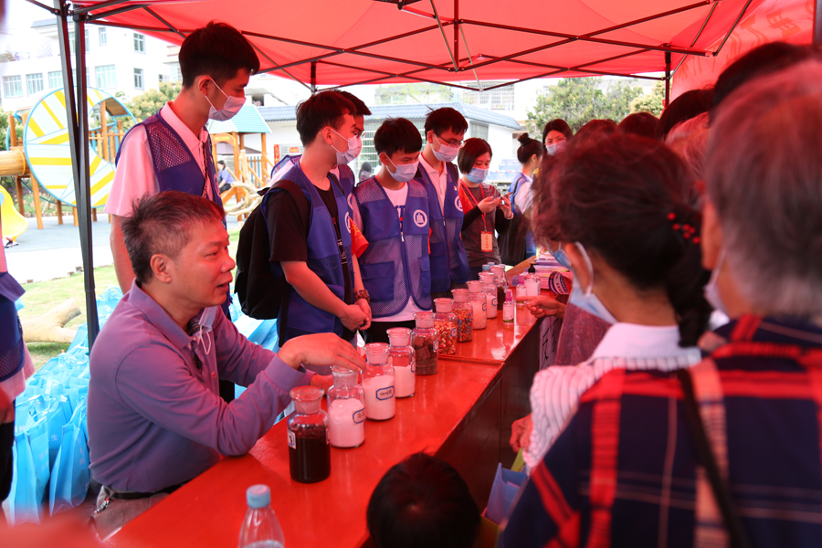 街道党工委副书记、政法委员方为生向群众讲解国家安全、禁毒、反邪、扫黑除恶等知识,提升群众意识;龙湖街综合治理办公室张主任在国家安全教育主题讲座中向居民普及国家安全法律法规知识,我院服务队志愿者派发国家安全册、防范电信诈骗、禁毒宣传册等,在方书记和张主任的的带领下向村民讲解有关知识,保持警惕,反对邪教、禁止毒品,维护国家安全,共创平安龙湖。