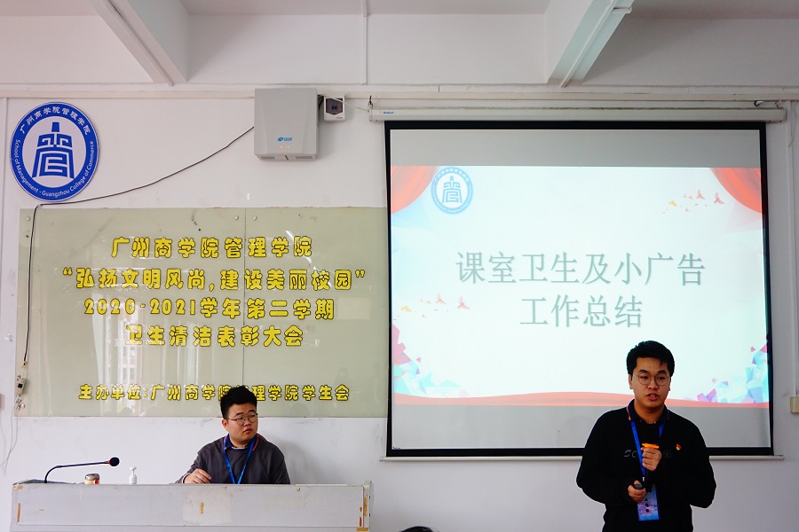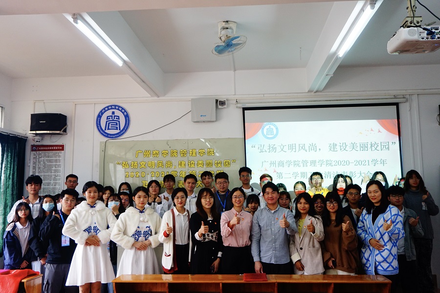 为了引导学生养成健康、文明、卫生的良好生活习惯,落实校园卫生清洁工作,加强美丽校园的建设,管理学院于12月15日中午12:40在三教301举行“弘扬文明风尚,建设美丽校园”卫生清洁工作表彰大会。出席本次活动的嘉宾有学生会指导老师蔡俊发、2018级辅导员李文娣、杨丹铭、2019级专升本辅导员冯梦琦、2020级辅导员袁小蕾、林冬梅、2021级辅导员杨红烨。2019-2021级各班的权益委员、优秀班级代表以及优秀宿舍代表参与了本次活动。