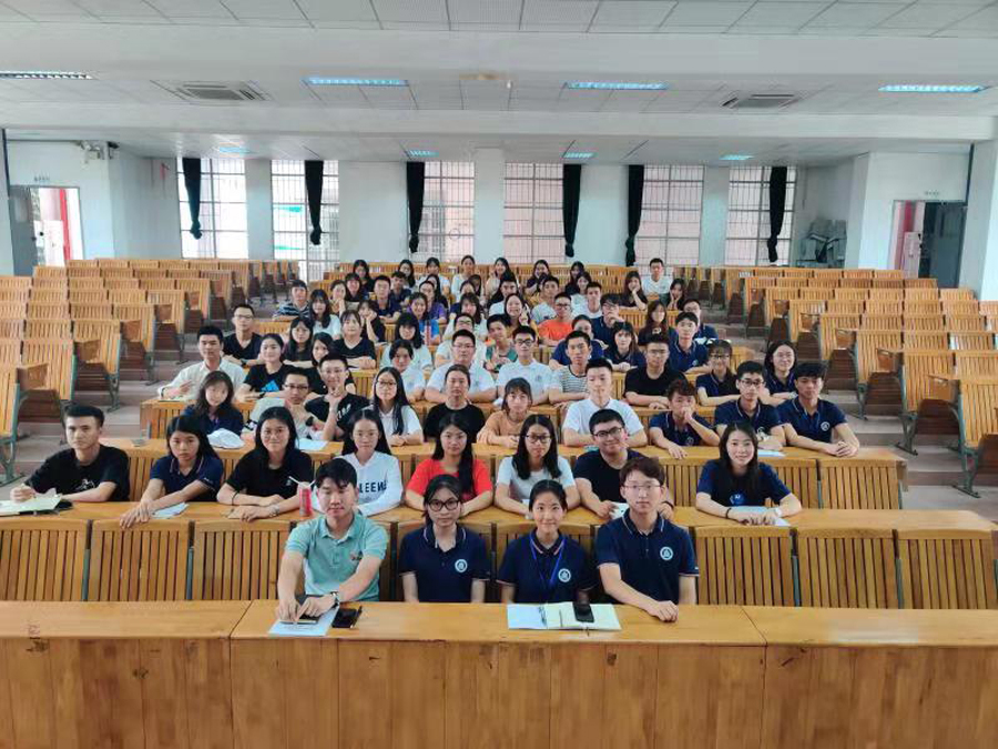 会议伊始,管理学院学生会主席黄理坤首先对学生会组织架构、各部门职能进行了简单的讲解和对干部们进行了礼仪培训,全体干部认真听讲,并仔细地做笔记。随后,各部门的部长和干部们陆续上台作自我介绍,各干部之间的关系在介绍中慢慢拉近。在紧接着开展的听歌识曲和数字爆炸这两个小游戏中, 干部们踊跃参与,随着一首首歌曲的播放和紧张的数字爆炸,现场的气氛瞬间活跃起来。