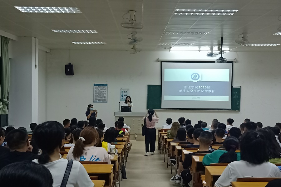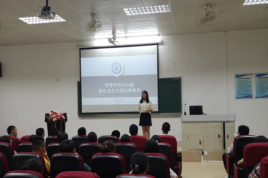 为进一步加强新生入学教育,同时规范2020级新生言行举止、增强纪律观念和安全防范意识,促进其养成良好的学习和行为习惯,形成良好的校风、学风、班风。管理学院于9月14日晚上7:00分别在四教第二报告厅、四教506及四教310召开新生安全文明纪律教育大会。本次安全教育会议分别由2020级辅导员柯陈洁、马琳洁、张亚珍主讲。
