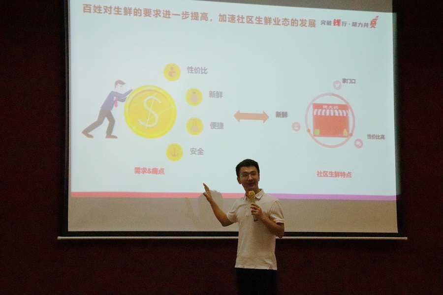 王朝政先从生鲜的定义、品类划分及其典型特征做简单介绍,接着重点介绍生鲜行业的发展历程、三大商业模式、生鲜行业现状和发展趋势预测。他指出,生鲜产品将不断走向标准化、品质化,生鲜企业从平台逐步走向生态,加速拥抱新零售,线上线下加速转化,冷链及物流环节会快速发展,供应链未来将是生鲜新零售企业的核心竞争力之一。政策持续加码,经济环境稳中向好,消费需求上升,技术进步助力生鲜行业的发展。最后,他结合钱大妈集团的企业文化、运营模式和人才需求,指出生鲜行业专业人才匮乏,供需严重不平衡,人才缺口较大。