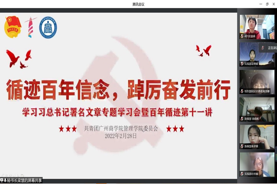 为深入学习习近平总书记重要文章《努力成为可堪大用能担重任的栋梁之才》,引导团委工作人员切实把思想行动统一到精神要求上来,培养可堪大用、能担重任的栋梁之才。管理学院团委于2月28日晚在腾讯会议召开了习近平总书记在《求是》杂志发表的署名文章《努力成为可堪大用能担重任的栋梁之才》专题学习会暨百年循迹第十三讲,团委书记李俞妍及管理学院团委全体成员出席了本次会议。