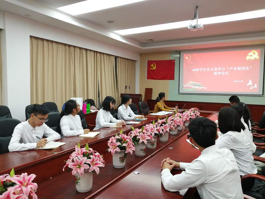 为充分发挥先进典型和示范带头作用,激励和引导学生党员坚定信念,对党忠诚,奋发有为,无私奉献,发挥先锋模范作用,2019年11月28日,管理学院18级学生党支部在第二行政楼208会议室开展学习“卢永根同志”精神会议。参加此次会议的有管理学院党总支书记汪椿东、18级学生支部书记李文娣及全体预备党员。本次会议由李文娣主持。