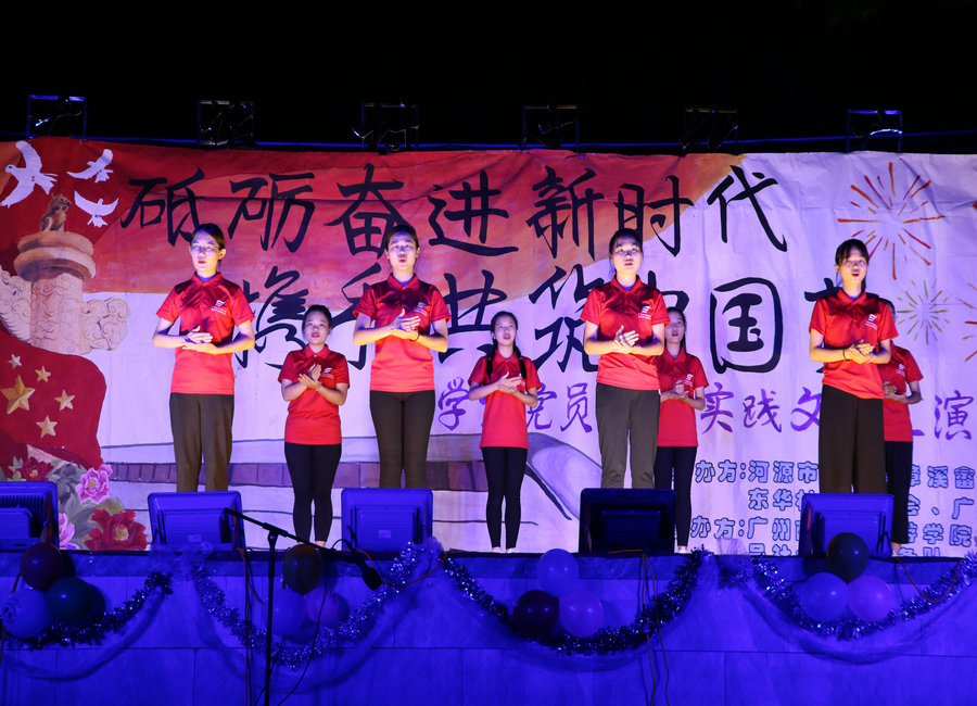 为深入贯彻十九大精神,服务地方经济社会发展,服务青年学生成长成才为主线,在这激情燃烧的盛夏,广州商学院旅游学院大学生党员社会实践服务队在河源市东源县漳溪畲族乡东华村进行了为期七天的实践服务,为充分展现三下乡服务队此次下乡的优秀成果,7月20日晚上8点,“砥砺奋进新时代,携手共筑中国梦”大学生党员社会实践文艺演出顺利进行。莅临现场的嘉宾有河源市东源县漳溪畲族乡吴建润副乡长、吴树勇站长、吴俊杰驻村工作组组长、乡贤吴木校长等,以及服务队指导老师蔡俊发,刘智莹、梁智斌。