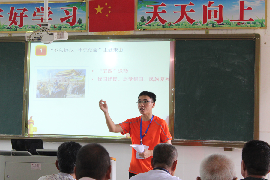 为促进基层党建工作的开展,增强党员政治意识、大局意识、核心意识、看齐意识,加强党性教育。广州商学院管理学院大学生党员社会实践服务队于7月11日下午在河源市东源县漳溪畲族小学开展“不忘初心、牢记使命”系列党课开课仪式。莅临本次活动的嘉宾有河源市漳溪畲族乡下蓝村村委书记蓝振艺、漳溪畲族乡宣传委员蓝伟先、乡村振兴办公室主任吴平,党员社会实践活动指导老师蔡俊发、刘智莹、梁智斌。
