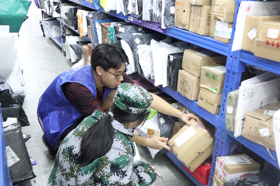 活动开展前,对志愿者进行工作培训,了解驿站人流分布,熟记新生常见疑惑及高峰时段注意事项,志愿者配合工作安排,分工明确,站守岗位,穿梭在货架间和出库台前,主动询问并指引新生查找包裹,让新老学生熟悉疫情期间驿站取件出库流程;疏导前门人流,解决包裹未出库、信息未录入等问题;维持前台秩序,细心解答同学们的问题,减轻驿站拥堵状态。在志愿者们的引导下,同学们收取快递井然有序,效率显著提高,赢得同学们和驿站工作人员的一致赞赏。
