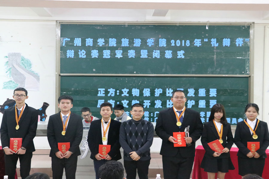 为给学生提供展现与提升自我的平台,提高学生的思辨能力,展现我院学子朝气蓬勃之风采,2018年12月10日晚上,旅游学院2018年“礼辩杯”辩论赛冠军赛暨闭幕式在第一教学楼107课室正式开始。莅临本次比赛的嘉宾有旅游学院副院长舒光美、教师王晓宁,辅导员刘智莹,图书馆党支部书记潘似俏以及各二级学院学习部代表,担任现场的评委由来自不同学院不同年级的7名资深辩论队队员组成。