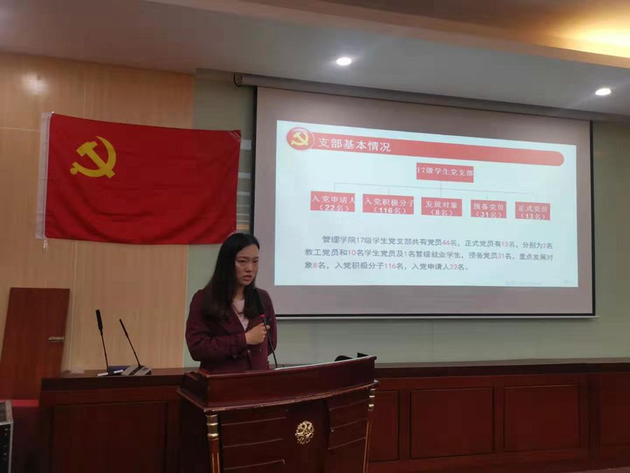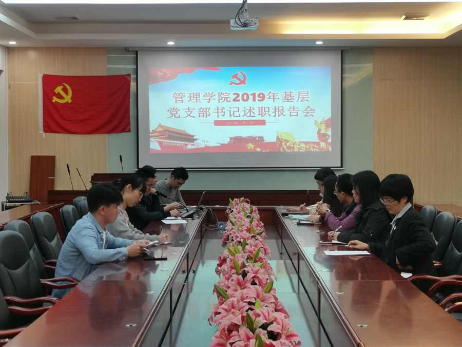 为落实基层党组织书记第一责任人职责,推动全面从严治党向基层延伸、向纵深发展,提升基层党组织工作能力和水平,促进各支部间的学习和交流,12月31日,管理学院召开2019年基层党支部书记述职大会,参加本次大会的有管理学院党总支书记汪椿东,各党支部书记、各支委以及师生代表。