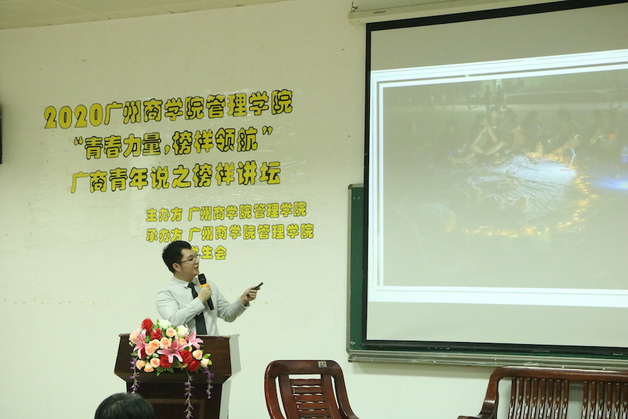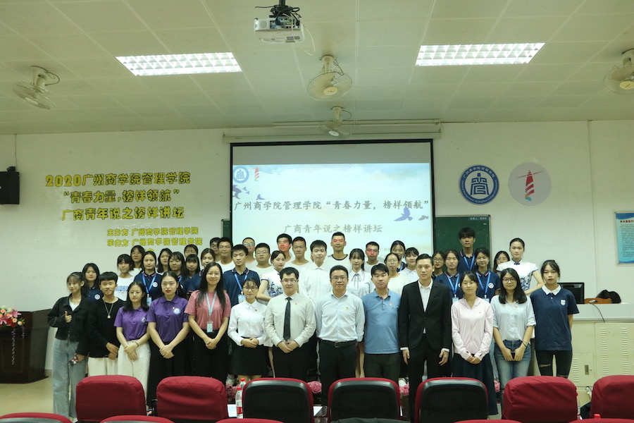 为了激发管理学院20级新生的学习热情,给新生提供有效的学习方法和目标规划的经验分享,使他们明确自己的学习目标,做出清晰明确的大学学习规划,更好的融入大学生活,管理学院于2020年10月27日晚19点30分在第四教学楼第二报告厅举办“青春力量,榜样领航”广商青年说之管理学院榜样讲坛。出席本次活动的嘉宾有管理学院党总支书记汪椿东,学生会指导老师蔡俊发,17级辅导员肖娴,20级辅导员柯陈洁、张亚珍,校学生会以及各二级学院学生干部代表。