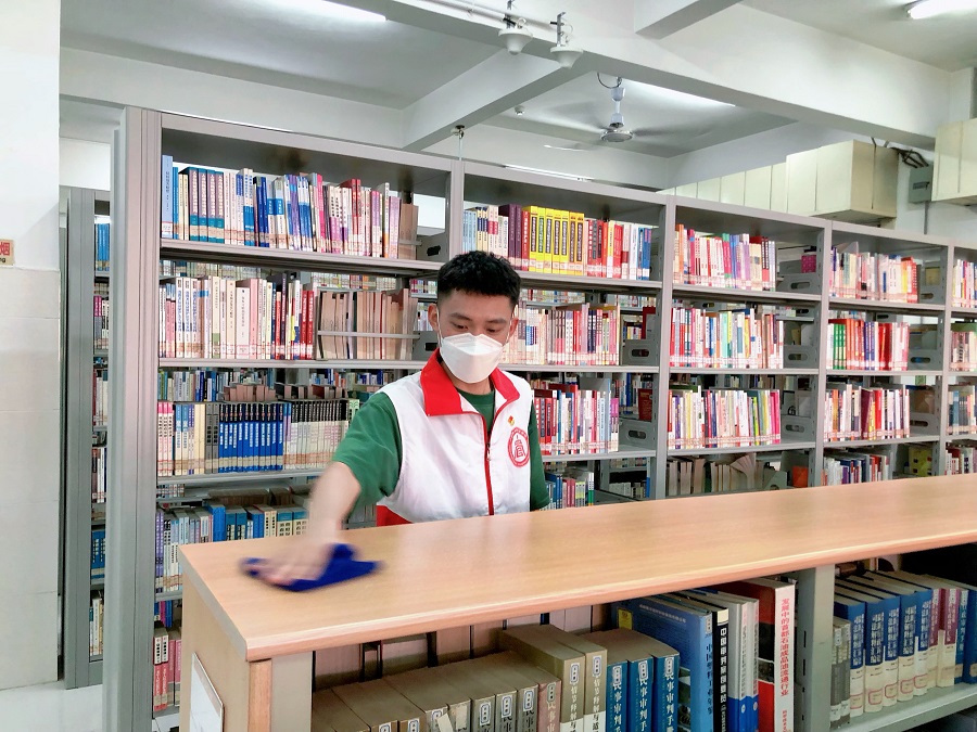 为积极贯彻习近平总书记重要讲话精神,深入开展“我为群众办实事”实践活动,推动党史学习教育落到实处,发挥学生党员和入党积极分子的先锋模范作用,管理学院党总支与图书馆党支部进行合作,长期招募学生党员和入党积极分子志愿者到图书馆进行志愿服务活动。9月22日下午,管理学院党总支开展本学期第一周图书馆志愿服务活动,组织志愿者协助图书馆卫生维护工作。