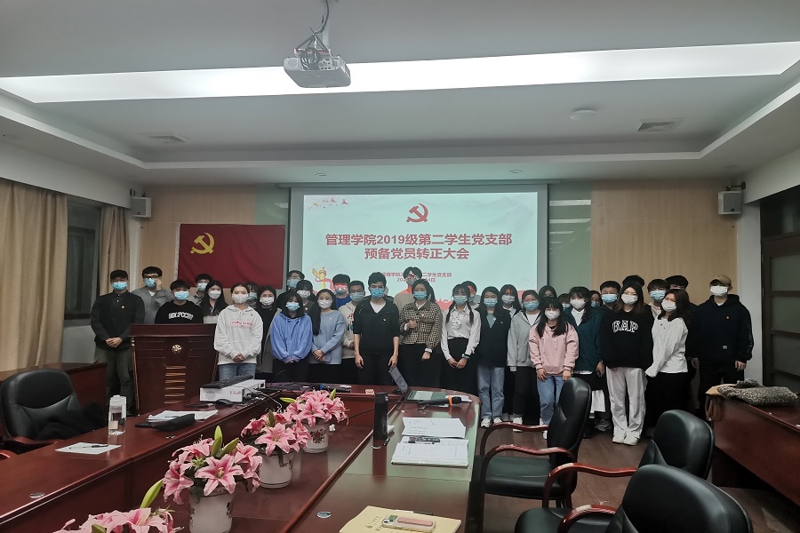 为坚定党员理想信念,坚守党的群众路线方针,充分发挥新时代党员的先锋模范作用,管理学院2019级第二学生党支部于3月24日晚上在第二行政楼108召开预备党员转正大会。出席本次大会的有管理学院2019级第二学生党支部书记黄华科、组织委员冯梦琦、宣传委员杨静、支部全体党员和积极分子,本次会议由杨静主持。