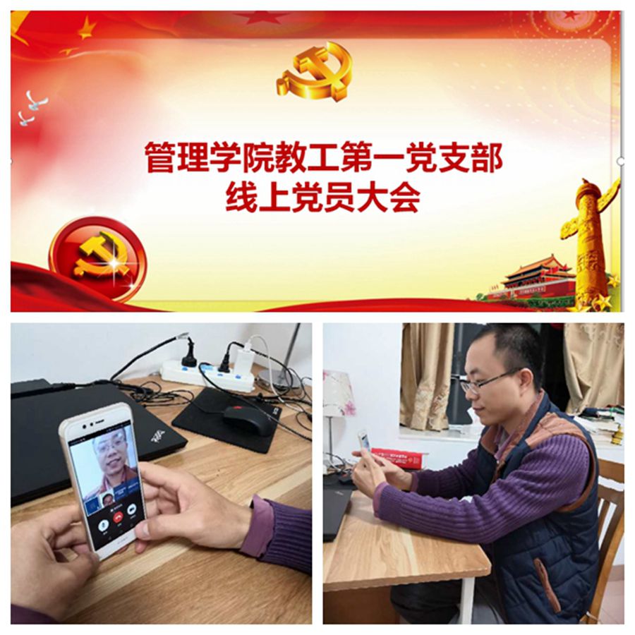 为保障疫情期间组织生活不掉线,严格落实党支部“三会一课”制度,3月17日晚8:30,管理学院教工第一党支部通过“学习强国”学习平台上的“强国视频会议”功能召开党员大会,会议由支部书记胡雷同志主持。