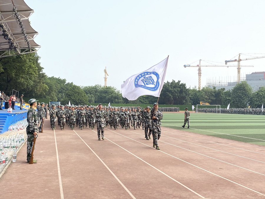 9月28日,管理学院2021级新生进行了军训汇演彩排。田径场上管理学院院旗随风飘扬,学子们迈着自信的步伐,在全校师生面前奋力喊出口号:“二营一方,气宇轩昂,劈波斩浪,百炼成钢”。