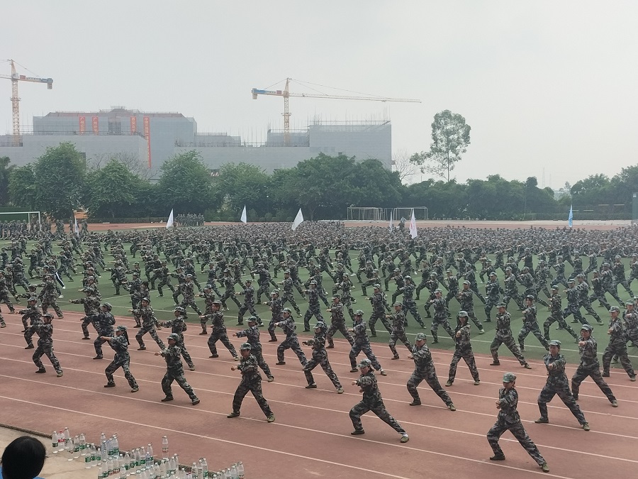 在各自教官的带领下,同学们都迈着整齐有力的步伐走到训练场上,有序地等待彩排的开始,在这期间大家不敢有丝毫的放松。彩排的号角吹响,伴随军训团团长的介绍,穿着迷彩服的管院学子迎面走来。同学们目视前方,随着口中喊出的“一二一”,踏着整齐,坚定而又自信的脚步,每个队伍的同学们都动作整齐划一,严谨有序地接受检阅。