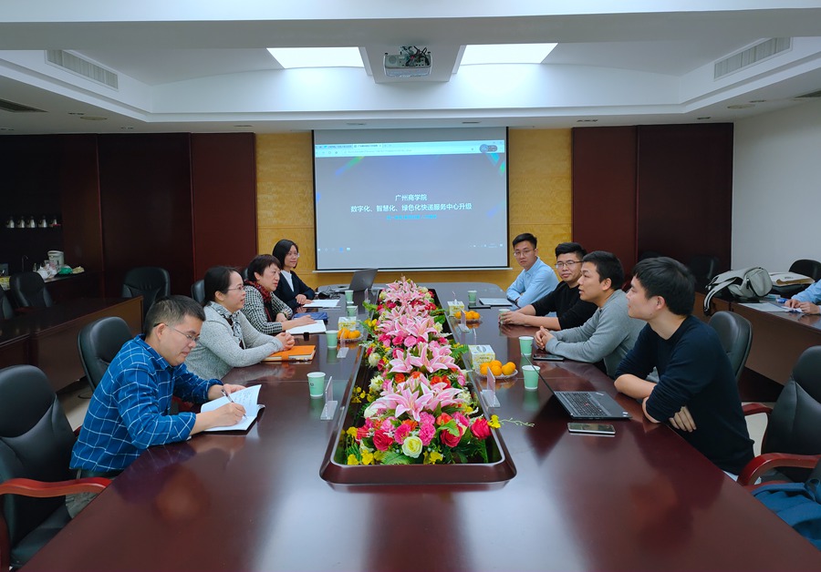 1月9日,浙江菜鸟供应链管理有限公司华南&西南&华东区总监张强、华南区经理张忠全、华南区校企合作负责人胡文刚、广东省运营经理张杰豪一行到访我校,洽谈菜鸟驿站技术升级改造项目。学校副校长欧洁梅、教学与科研工作部部长彭娟、教学与科研工作部副长舒光美以及管理学院副院长白丽在第一行政楼401会议室接待了张强一行,双方围绕菜鸟驿站的升级改造进行了深入交流。