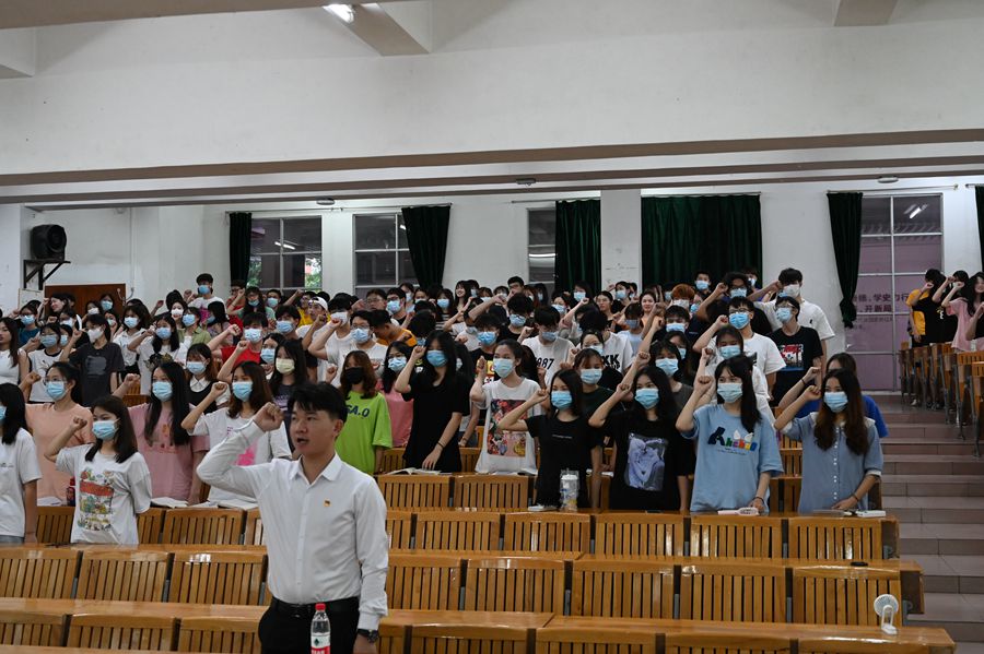 会议伊始,班团干部代表王玮佳、邓丽芬从考试的重要性、诚信考试、备考小贴士、“4+X”培养、假期安全以及疫情防控这六方面进行讲述。列举往年作弊违纪学生的案例,分析其作弊行径和作弊心理,强调作弊违纪的危害以及严重后果、着重说明考风考纪建设的重要性和必要性,呼吁同学们在接下来的考试中,端正考试态度,严守考风考纪,抵制作弊行为,随后,带领全体同学进行诚信考试承诺宣誓。
