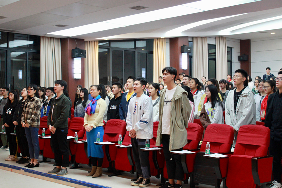 为贯彻落实“四进四信”精神,提高团员的综合素质,鼓励团支部积极参与团组织生活,增强团组织活力。旅游学院团委于2018年11月26日晚上7:30在学校四教第一报告厅举办了“团旗飘扬展青春,支部示范绽光彩”示范性团组织生活。出席本次活动的嘉宾有旅游学院团委书记蔡俊发、旅游学院学生会指导老师刘智莹、旅游学院17级酒店管理二团支部结对子老师黄少如、校团委副书记庞卫健以及各二级学院学生干部代表,17级、18级全体团员参加了本次活动。