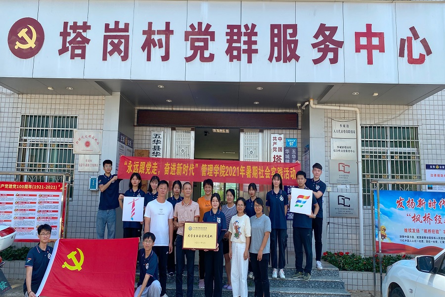 为深入学习宣传贯彻习近平新时代中国特色社会主义思想和习近平总书记关于青年工作的重要思想,落实中宣部、中央文明办、教育部、共青团中央《关于进一步加强和改进大学生社会实践的意见》,7月26日,广州商学院管理学院与梅州市五华县华城镇塔岗村民委员会进行大学生社会实践基地签约暨揭牌仪式。塔岗村党委副书记廖南平,华城镇人大代表、塔岗村党委委员张德胜,广州商学院管理学院团委书记李俞妍,塔岗村党委委员张雪花,塔岗村党委委员、团支部书记廖爱萍以及管愿益行灯塔实践队全体成员出席本次活动。