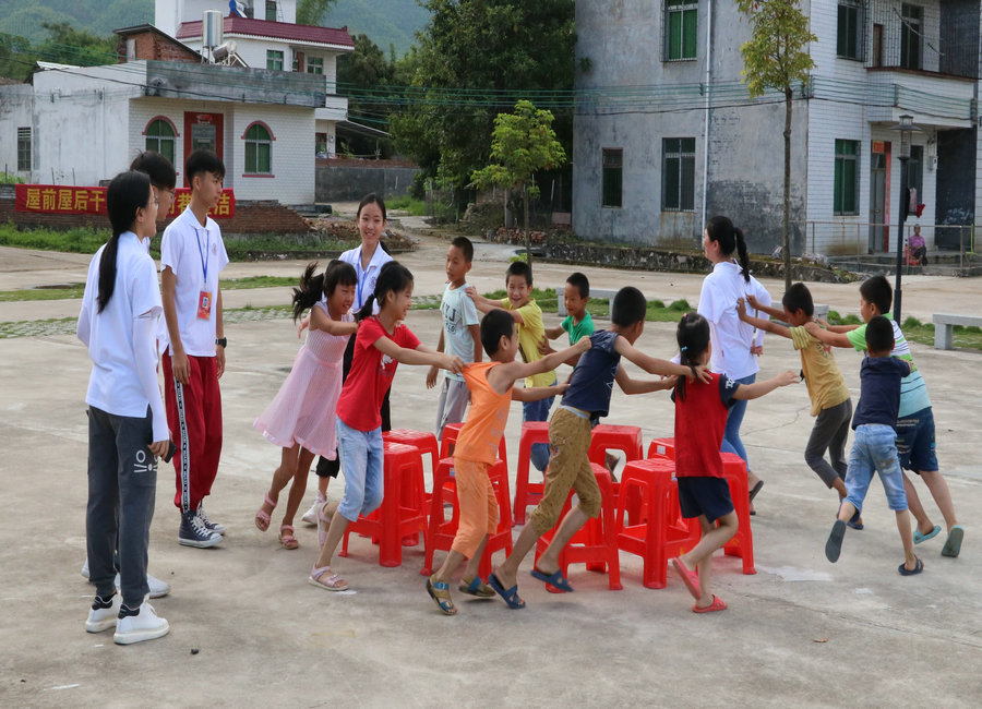 支教组按照计划做好了招生准备,并开展了有序的招生工作,对到达的家长和孩子热情招待,表示慰问;为前来咨询的家长及孩子解疑答惑并作了详细介绍了本次服务队支教活动的教学计划,一系列形式多样的课程引起了孩子们的兴趣。在报名过程中,支教队队员与学生家长达成一致目的,签订好了协议书,确保学生安全以及暑期教学工作的进行,使得家长大大放心孩子的安全等各项问题。在参加完报名工作后,队员们和孩子们一起做游戏玩耍,广场上一片欢声笑语、其乐融融。