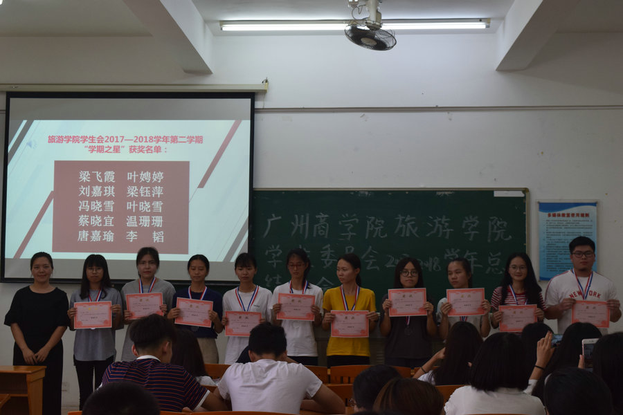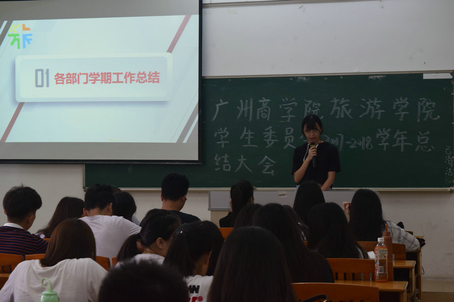 光阴似箭,转眼一个学期又将过去。为了更好地总结过去,展望未来,6月27日中午,广州商学院旅游学院学生会在四教312开展了2017—2018学年总结大会。参加此次总结大会的有学生会指导老师刘智莹、学生会主席团以及全体干部。