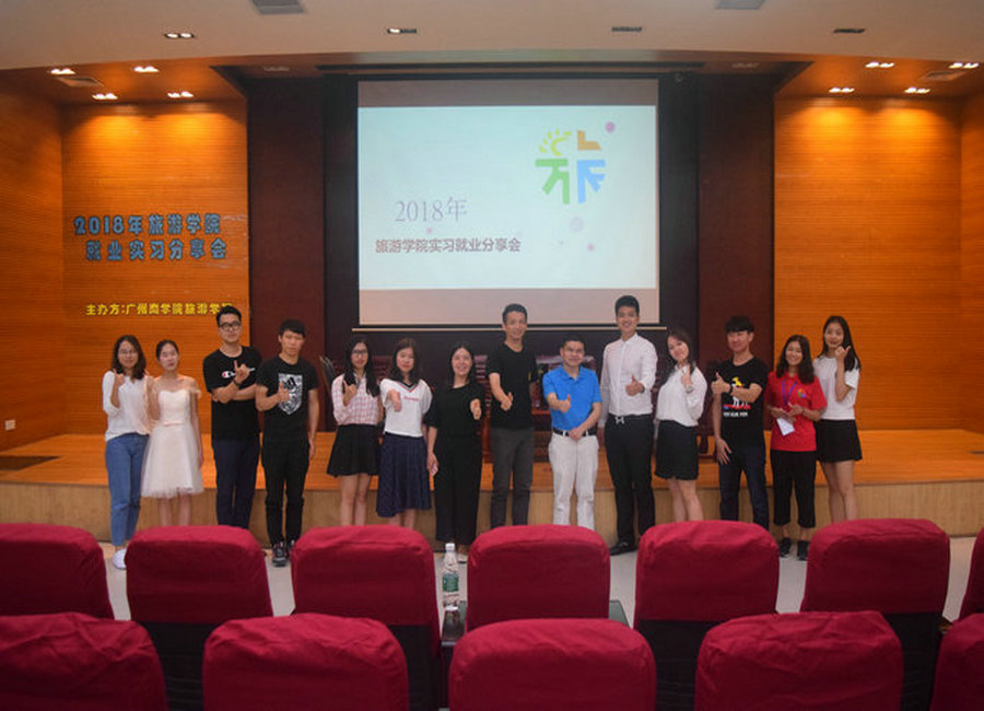 时光荏苒,转眼间又迎来了毕业季。已经实习一年的大四学生即将正式踏入社会,同时,也有一批学生将开始实习。为了让大三学生更加了解实习的工作选择,坚定目标,2018年5月14日晚,旅游学院2018年实习就业分享会在第一报告厅顺利举行。出席本次分享会的嘉宾有旅游学院副院长舒光美、15级辅导员蔡俊发、毕业生代表以及大三全体学生。